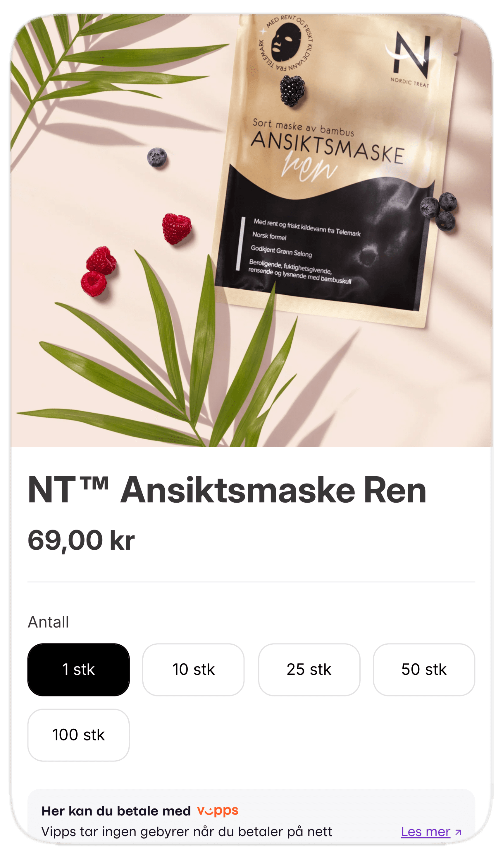 Betalingsintegrasjoner. Vi setter opp Vipps, MobilePay, Klarna, Swish, Visa og Mastercard, slik at kundene dine alltid kan betale på sin foretrukne måte.