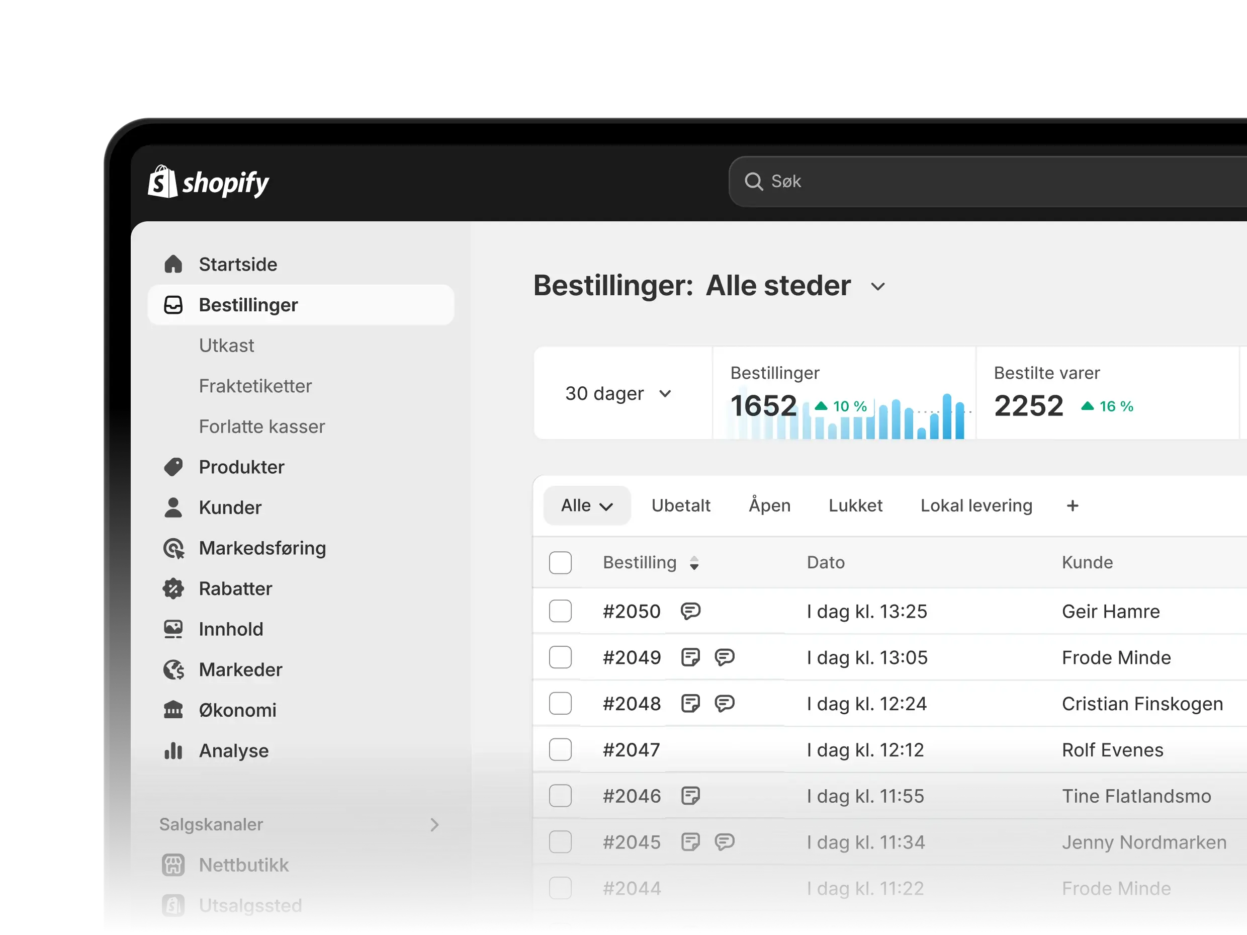 Hundevis av integrasjoner. Betaling, regnskap, frakt, lagerstyring, produktstyring og mye mer. Alt satt opp til å snakke sammen, fra dag en.